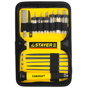 Заказать Набор ножей для точных работ в комплекте с лезвиями и надфилями, в чехле,38 предметов STAYER "MASTE в магазине «Технофактор» Вы можете: